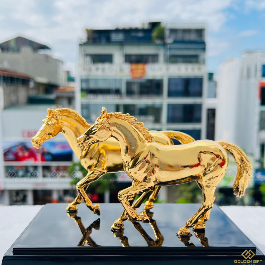 Tượng Song Mã Tự Do Mạ Vàng với dáng vẻ thong dong, an viên tự tại cùng tiến bước tượng trưng cho thành công, sự nghiệp thăng tiến và một cuộc sống ấm no, hạnh phúc trọn vẹn.