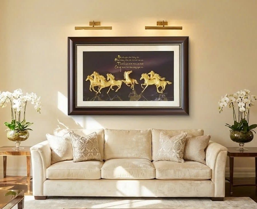 Những lưu ý khi treo tranh bát Mã truy phong mạ vàng