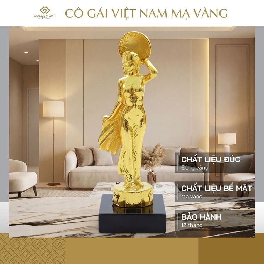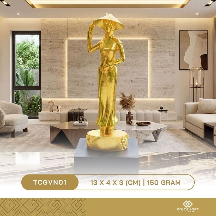Tượng Cô gái với tà áo dài Việt Nam cách điệu cùng chiếc nón lá truyền thống được mạ vàng là một sự lựa chọn ý nghĩa trong các dịp lễ như 14/2, ngày 8/3 và 20/10, cũng như tặng người nước ngoài.