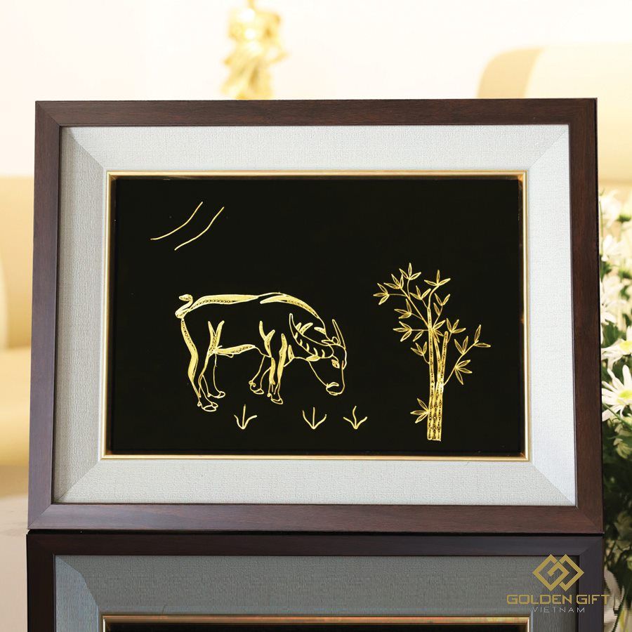 Tranh kim Ngưu mạ vàng do Goden Gift Việt Nam chế tác mang nét đẹp tinh xảo, gần gũi với đời sống của người Việt. Với việc tạo hình sống động, đặc biệt tranh được mạ vàng thật bằng phương pháp điện phân, giúp sản phẩm bền mãi với thời gian, bức tranh vừa có giá trị văn hóa, vừa có giá trị thẩm mỹ cao.