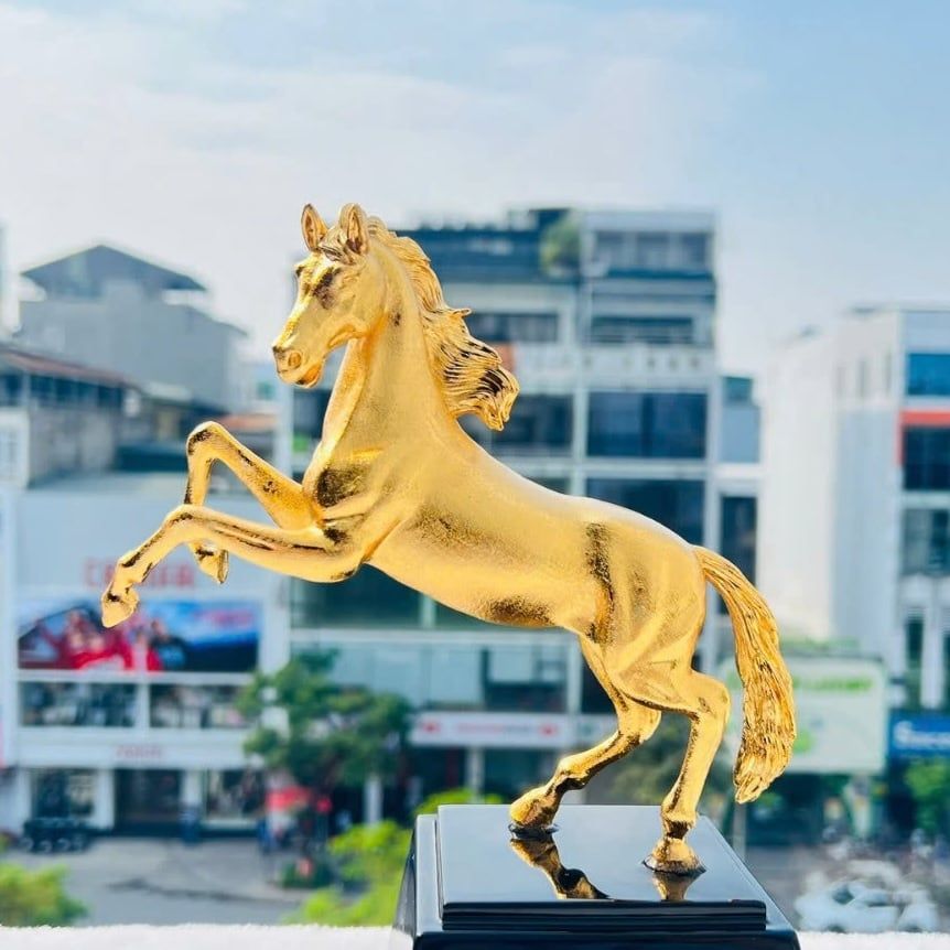 • Thu hút tài lộc, kích hoạt may mắn: Theo phong thuỷ, ngựa là linh vật giúp kích hoạt cát khí, hỗ trợ thu hút tài lộc, may mắn và mang lại vận khí hanh thông trong công việc, kinh doanh. Tượng Ngựa Vàng Chiến Thắng, với sắc vàng quyền lực, càng làm tăng khả năng chiêu tài tiến lộc, là lựa chọn hoàn hảo để đặt tại phòng làm việc, sảnh công ty hay phòng khách, những vị trí giúp kích hoạt vận mệnh và thu hút thịnh vượng.